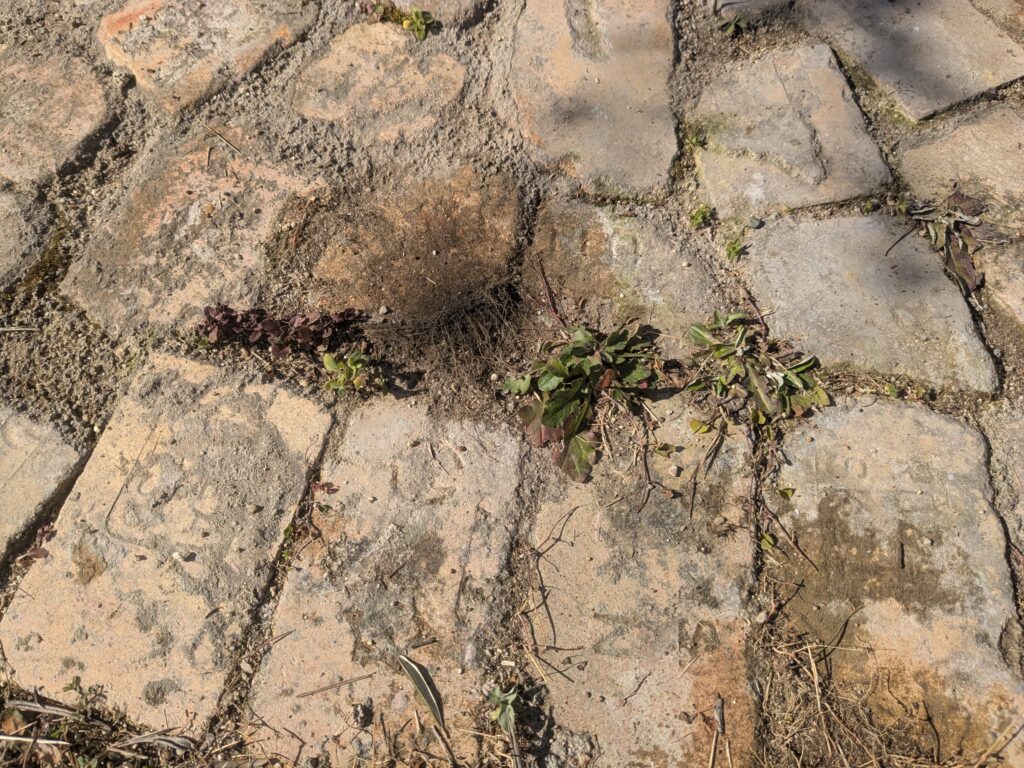 今回は土台にモルタルを使っていないためか、レンガとレンガの隙間から雑草が少し生えてきました